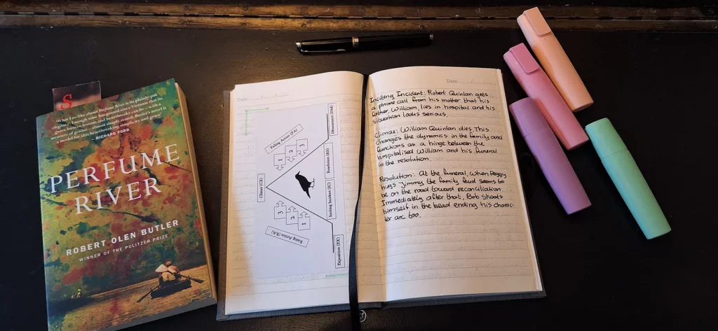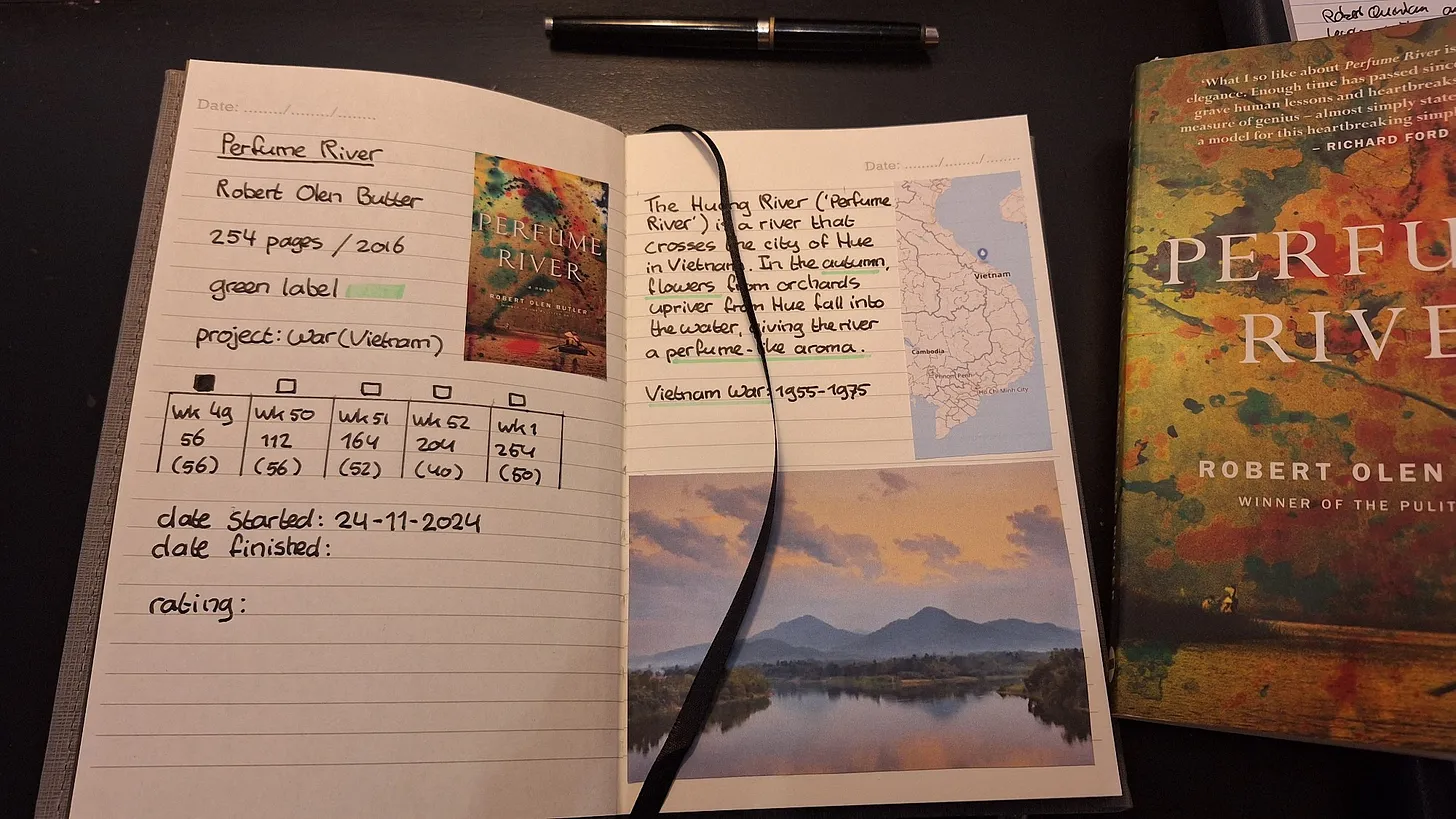 - Optioneel: achtergrondinformatie over het boek. Ik had voor mijn Reading Journal een kaartje van Vietnam en een foto van Perfume River. Ook had ik wat informatie opgezocht over Perfume River.