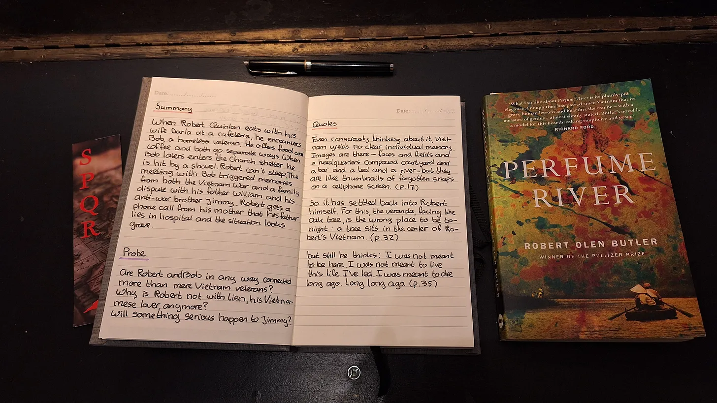 - Optioneel: achtergrondinformatie over het boek. Ik had voor mijn Reading Journal een kaartje van Vietnam en een foto van Perfume River. Ook had ik wat informatie opgezocht over Perfume River.